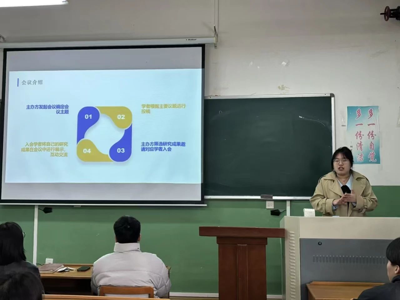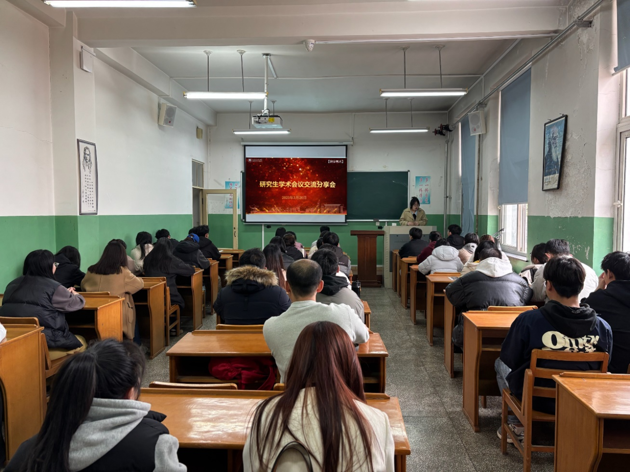 开展研究生参加学术会议心得分享会,近期参加过学术会议的2023级硕士研究生孙宇进行专题分享。学院党总支副书记刘灿娟、副院长王世进及2023级、2024级全体研究生参加了分享会。