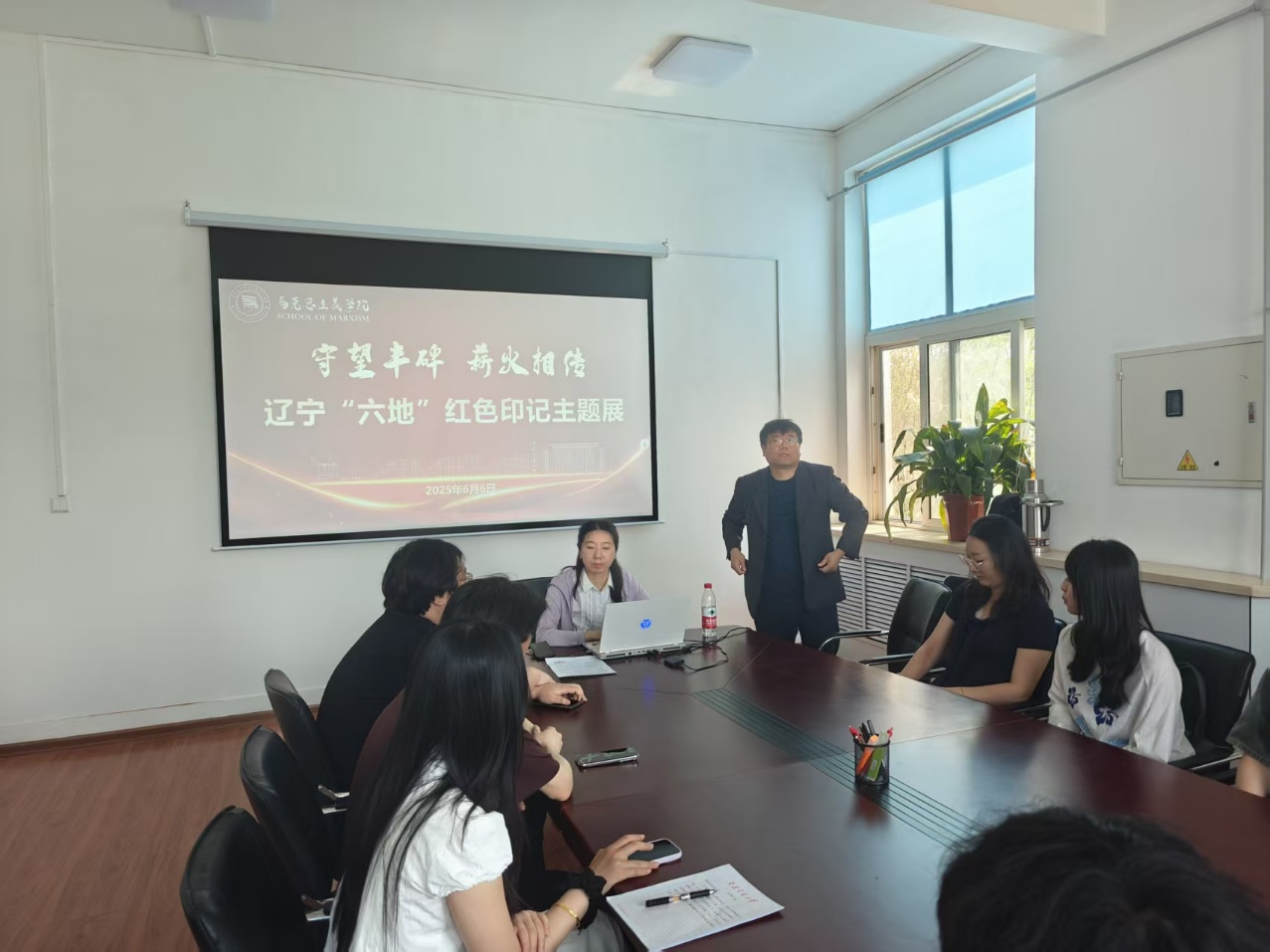 特邀旅顺日俄监狱旧址博物馆副研究馆员李雪,以“守望丰碑 薪火相传——辽宁‘六地’红色印记”为主题宣讲辽宁“六地”文化,2024级全体研究生在红色历史中寻脉络、探真知,解锁学术研究新视角。学院副院长王世进主持。