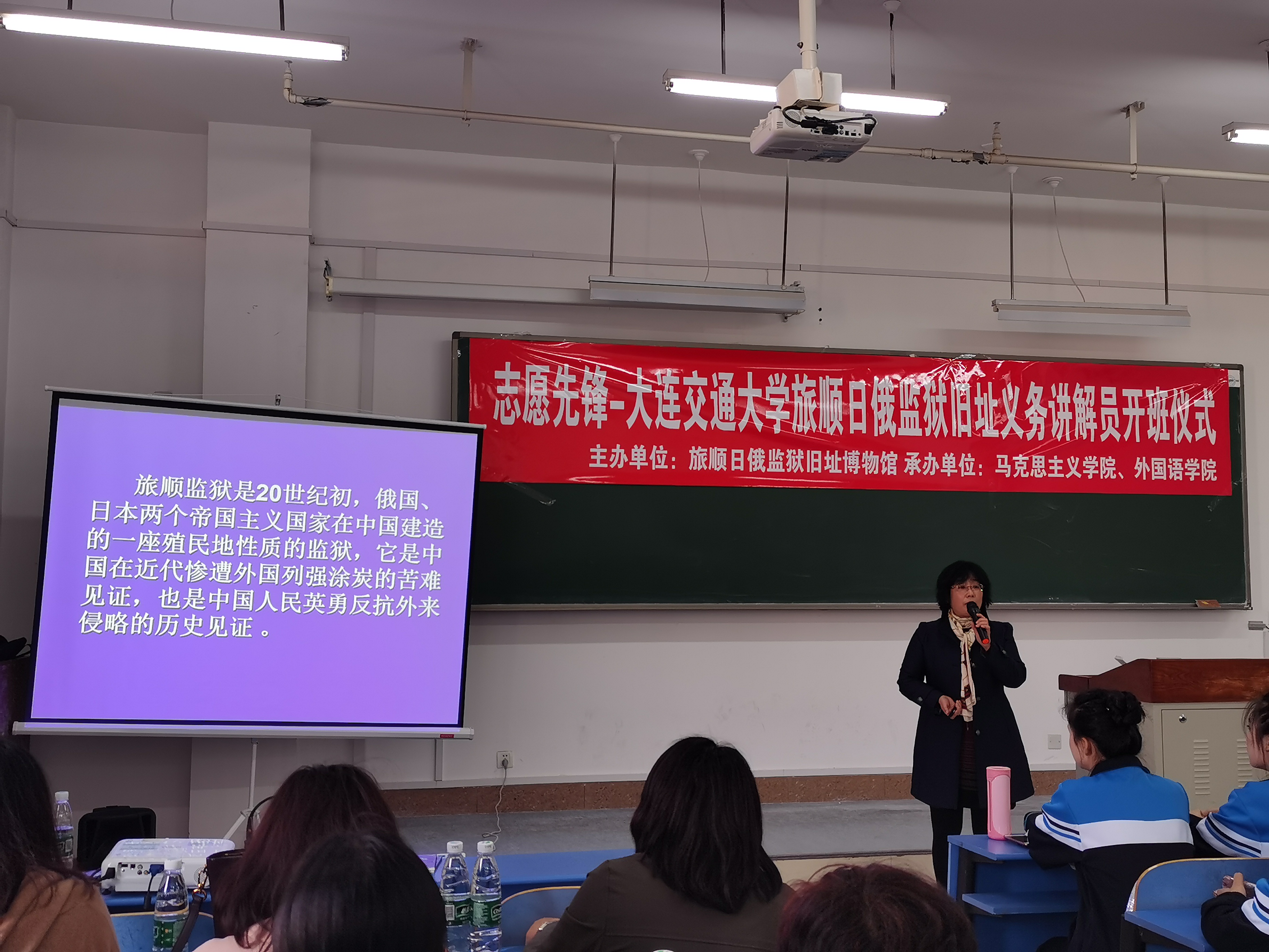 、外国语学院承办的第一期义务讲解员开班仪式在旅顺校区教学楼544举行。活动由外国语学院团委程飞老师主持,旅顺日俄监狱旧址博物馆副馆长周爱民研究馆员作了《旅顺日俄监狱旧址历史沿革与特点》讲座。周馆长从旅顺日俄监狱的历史演变讲起,重点介绍了旅顺日俄监狱的国际性、历史性、惨烈性等特点。同时强调了义务讲解员的基本素质和要求,希望同学们通过做义务讲解员,能够进一步认识历史、学习历史、传播历史,做一名合格的新时代爱国主义者。博物馆为同学们发放了义务讲解员教材,宣教部讲解员刘欣月老师就同学们提出的问题进行了现场解答。