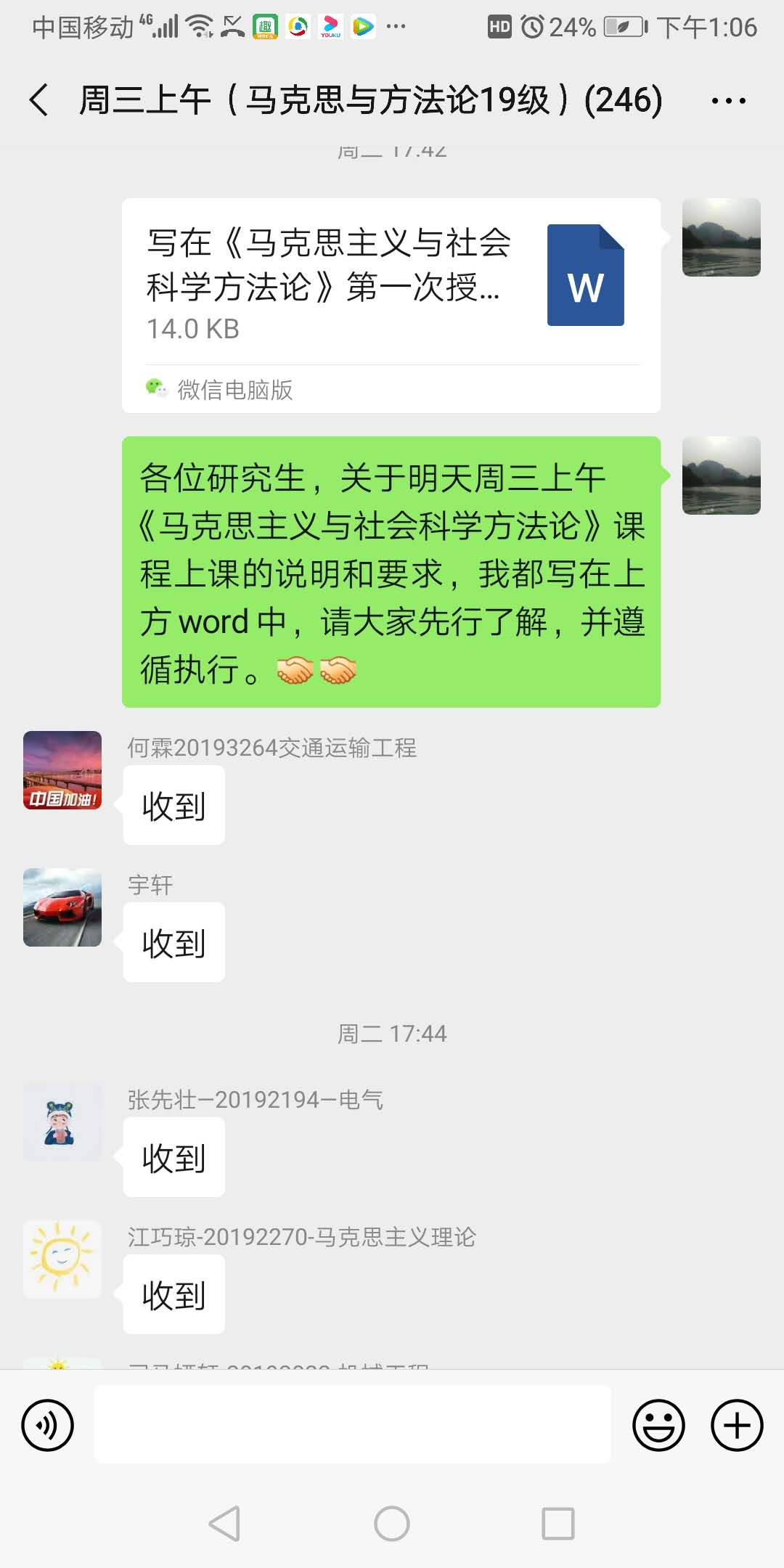 为了让同学们知道如何开展线上学习,王世进老师专门写了《写在<马克思主义与社会科学方法论>第一次授课之前的话>》,从课程特点、教学环节、具体开展流程,都详细地加以说明。在线上教学方式上,王世进老师借助“云班课+微信群”2个平台(云班课主要进行授课,微信群主要发通知和交流),采取“资料自学+平台互动”方式,实施“学生规定时间内自主学习教学资源”与“固定时间在线交流、讨论、答疑以及学生展示”相结合的教学模式。在第一次线上授课仲,王世进老师与同学们开展线上互动,同学们积极参与,互动热烈,完成了包括发起签到、头脑风暴和随堂测试等一系列互动教学。