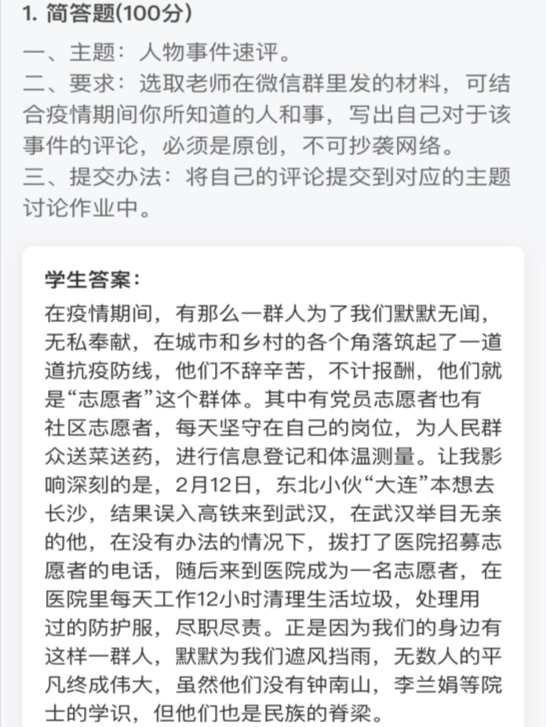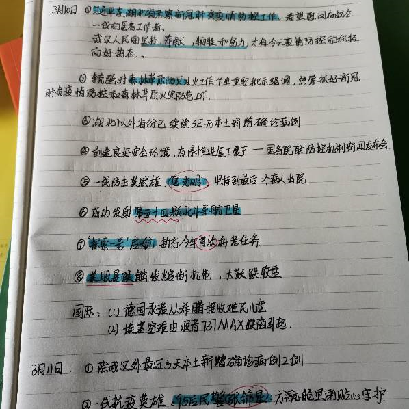 的老师特别注重在云课教学中引导同学们对社会进行仔细观察和认真思考。原理教研室李晶老师给大一本科同学布置的作业是每晚收看《新闻联播》,并至少记录整理3条新闻。同学们通过观看新闻了解疫情防控进展和世界大事,做到了家事国事天下事事事关心,学会了与祖国和人民同呼吸、共患难,更加自觉地用读书积蓄力量,用行动肩负责任,用拼搏昭示希望。
