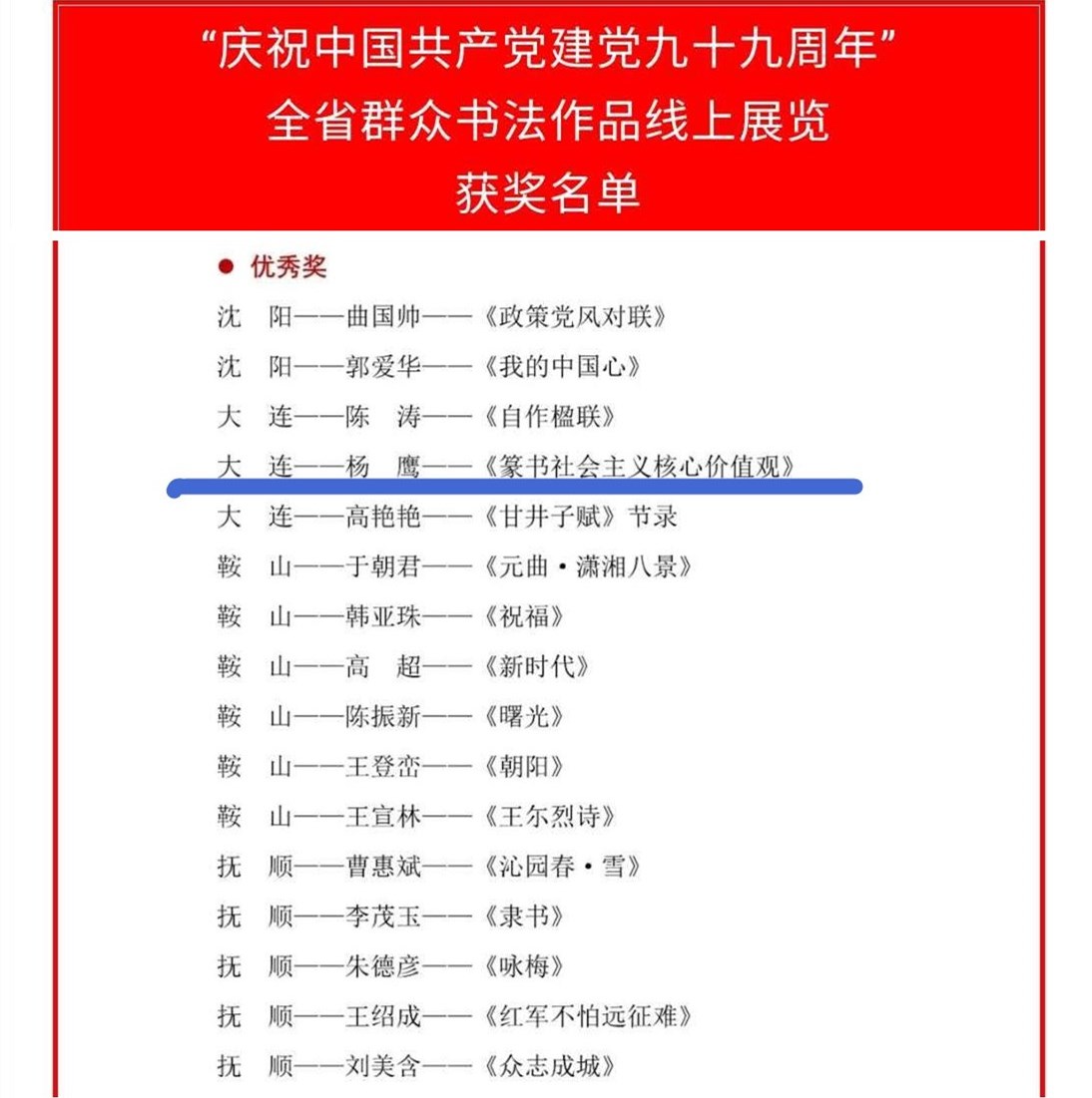 本次线上展览活动是由辽宁省文化馆(辽宁省青年宫)联合各市文化馆、艺术馆共同举办的。活动精选了全省近百件代表作品,涵盖美术、书法、摄影三大门类,向公众进行展出。杨鹰同志的作品从众多参展作品中脱颖而出,喜获奖项,展现了海角网