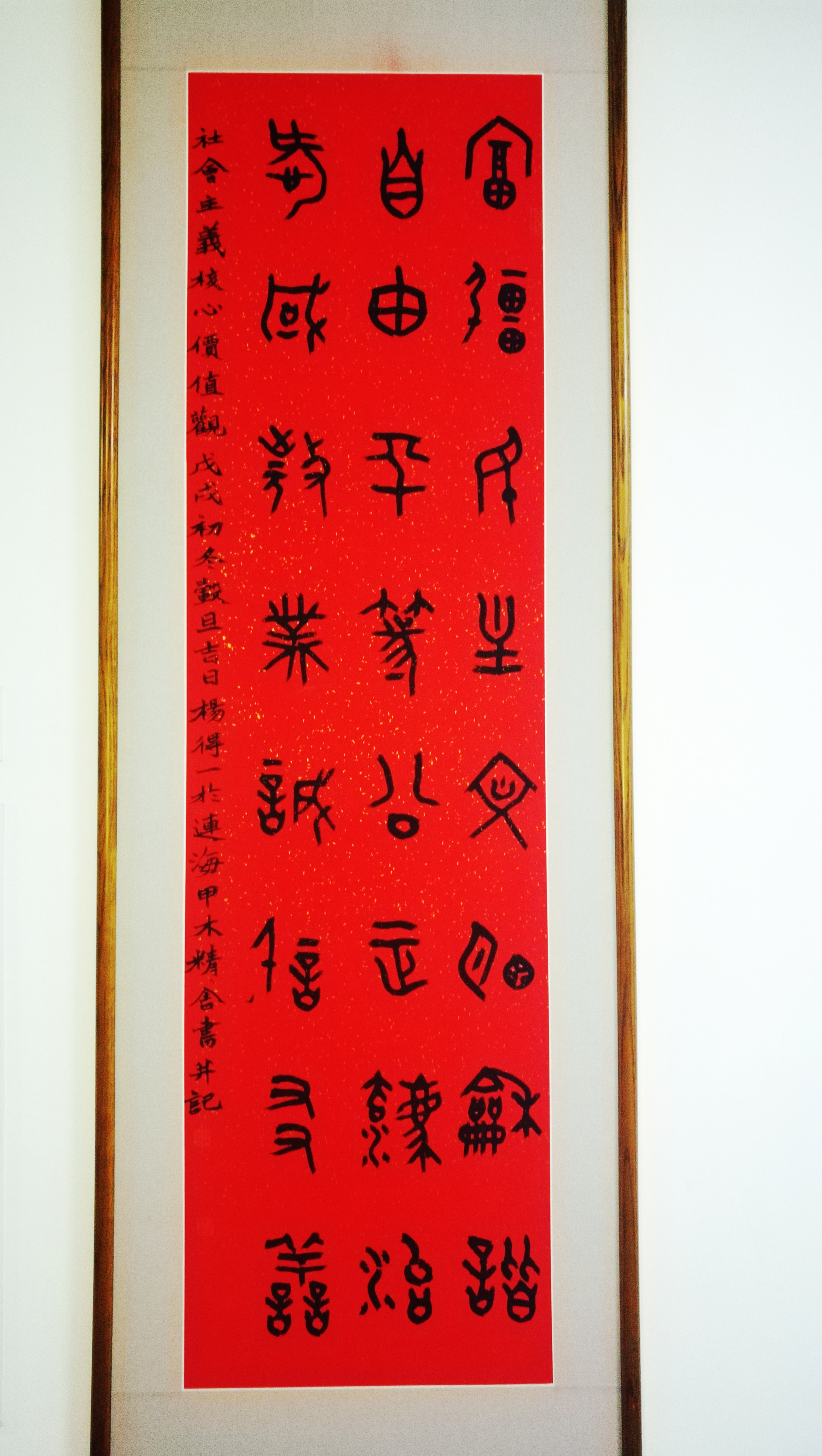 今年是中国共产党99周年华诞。马克思主义中国化党支部杨鹰同志以篆书作品为中国共产党成立99周年献礼,表达对党的无限忠诚与热爱。其作品《篆书社会主义核心价值观》获得“庆祝中国共产党成立99周年”全省群众美术、书法、摄影作品线上展览优秀奖。