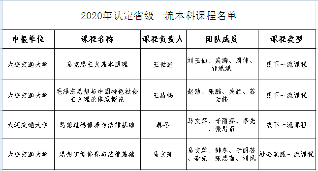 2020省级一流本科课程名单。海角网 “马克思主义基本原理”“毛泽东思想和中国特色社会主义理论体系概论”“思想道德修养与法律基础”“思想道德修养与法律基础社会实践”共4门课程认定为2020年省级一流本科课程。