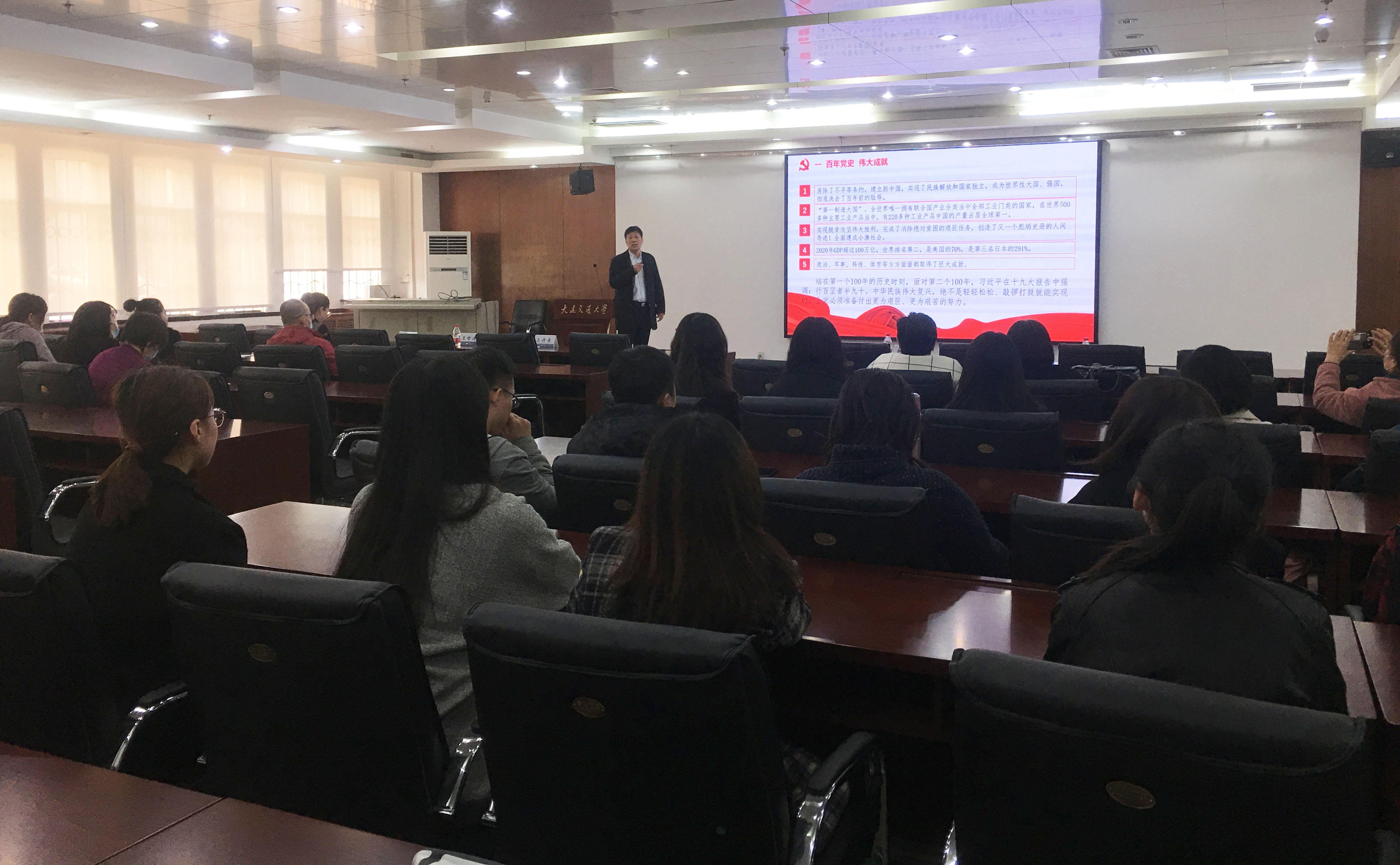 启动系列活动第一项内容暨2021年“唱响新时代·马院理论学习讲堂”第一讲,学院党总支书记王丹来以《百年党史 英雄赞歌》为主题为全院师生上了一堂生动的党课。