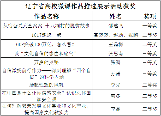 近日,辽宁省高校微课作品推选展示活动评选结果公布,海角网