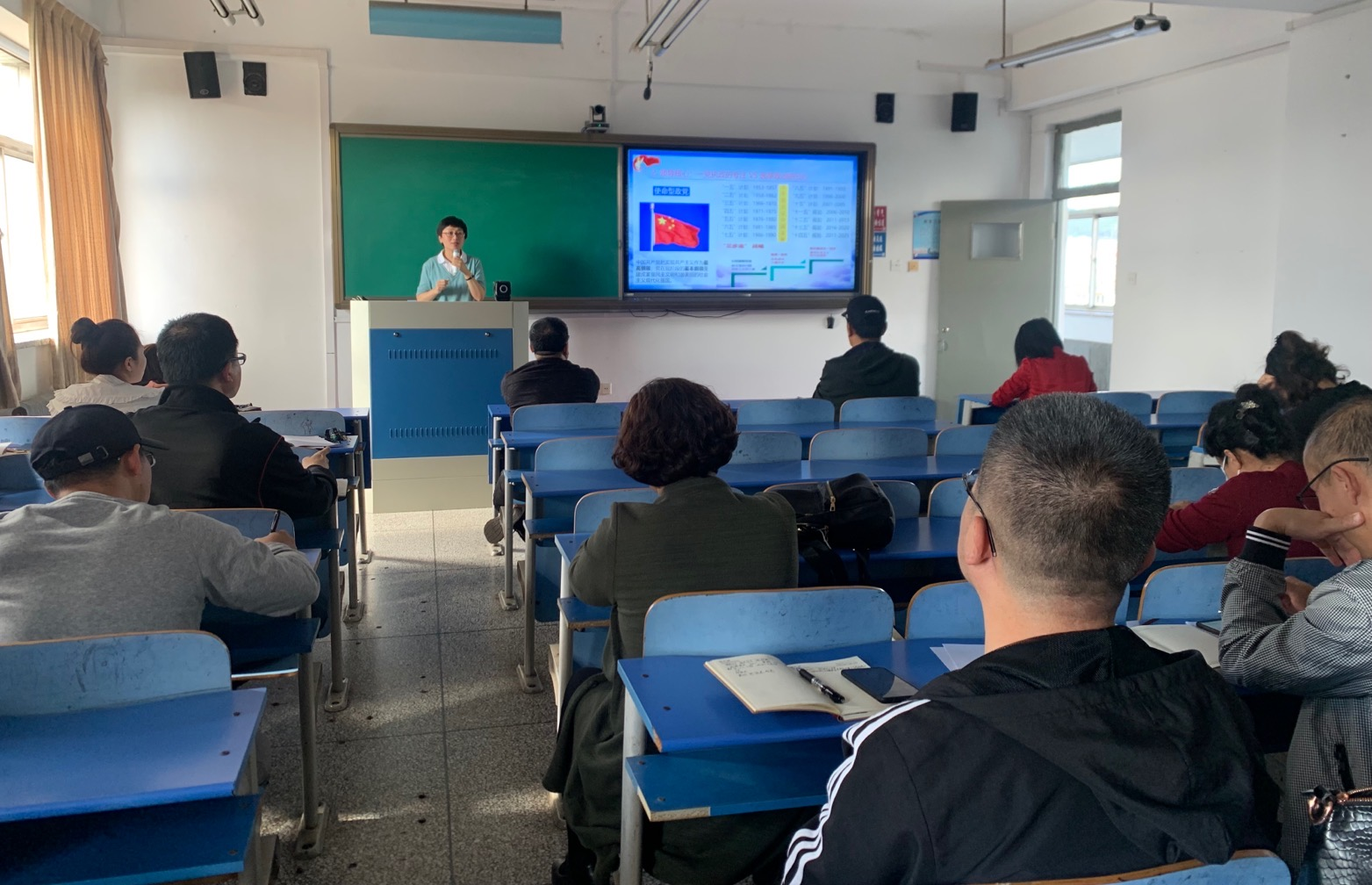 主办的“唱响新时代·马院理论学习讲堂”2021年第七讲在2号楼512教室开讲。由王晶梅老师作《比较视野下中国新型政党制度优势与制度自信》专题讲座,学院全体教师参加了本次学习。