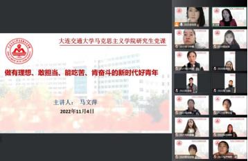 党课中,马文萍副院长就党的二十大报告中有关青年的重要论述,围绕“做有理想、敢担当、能吃苦、肯奋斗的新时代好青年”主题进行深入阐释,引导学生将党的二十大精神内化于心外化于行,成为有理想、敢担当、能吃苦、肯奋斗的新时代好青年。马院长强调,作为马院学子,要把学习贯彻党的二十大精神作为当前和今后一个时期的重大政治任务,切实把思想和行动统一到党的二十大精神上来,在全面建设社会主义现代化国家的实践中绽放绚丽之花。