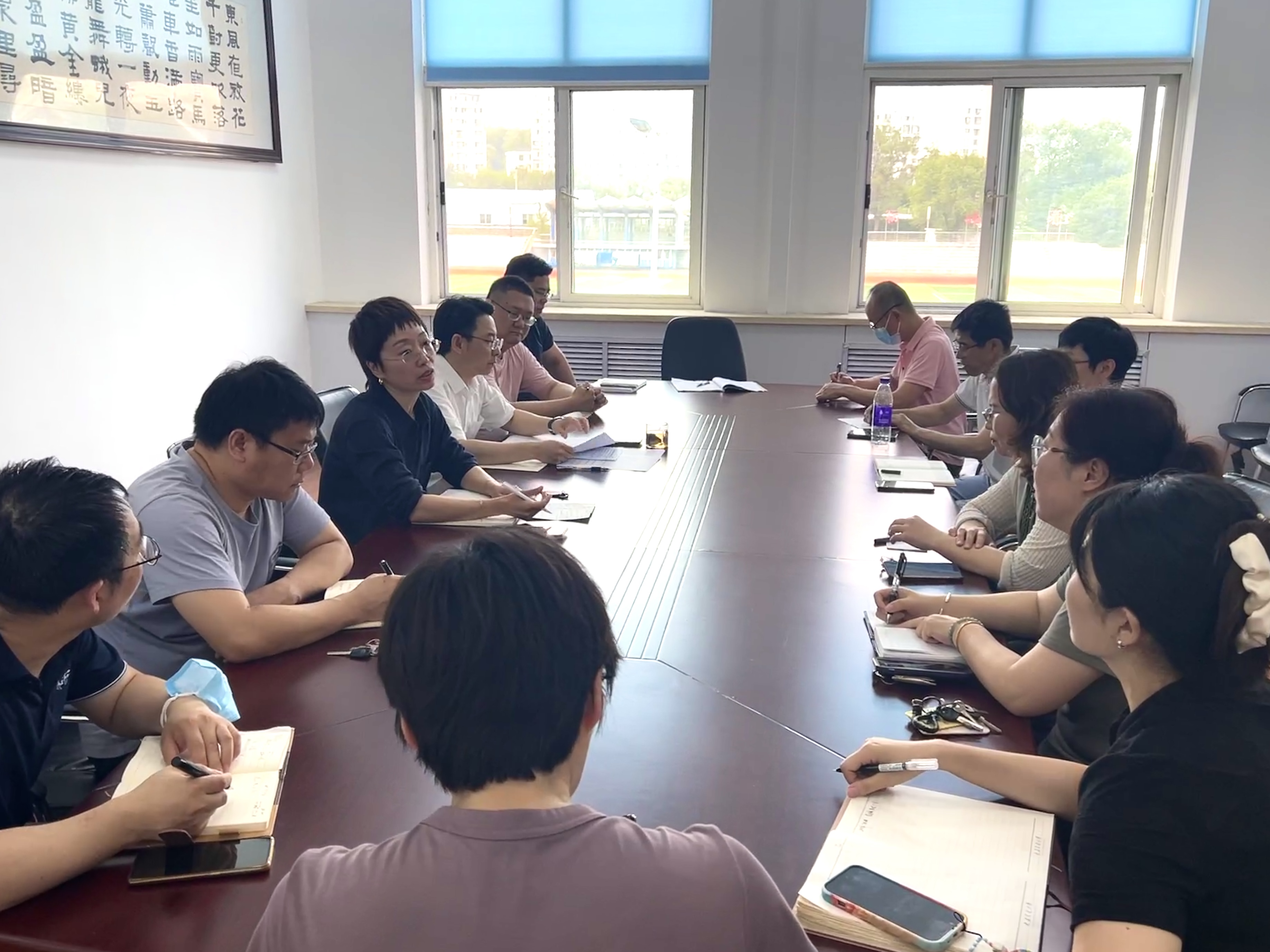 为进一步推进学院内涵建设,加快学院高质量发展,7 月 8 日上午,学院在会议室 201 召开发展建设推进会,对学院党纪学习教育开展情况、学院教职员工赴旅顺口校区考勤工作管理、学位授权点合格评估、教师队伍建设、暑期社会实践安排等有关事项进行研讨。学院班子全体成员、各支部书记及教研室主任参加了会议。院长刘峰搏主持会议。
